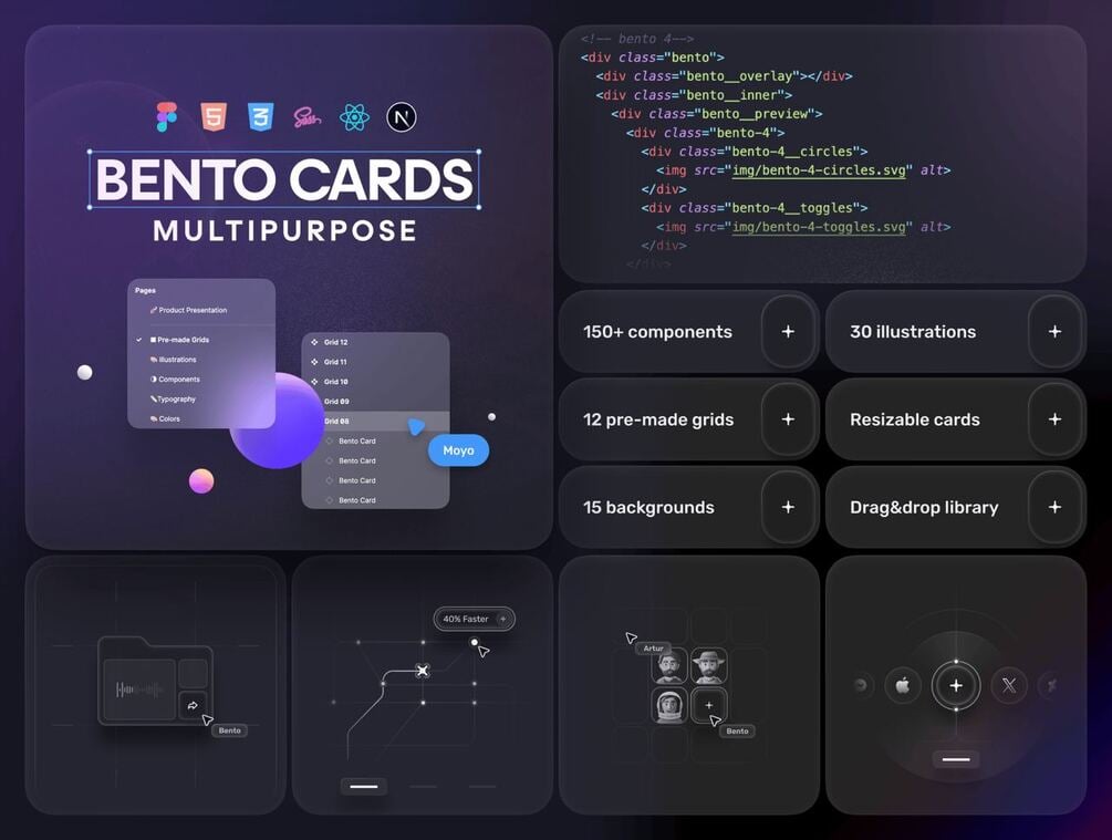 With 150+ components, 12 pre-made grids, and a powerful drag-and-drop library, this template gives you the freedom to mix, match, and build stunning layouts in minutes. Whether you’re presenting an app, pitching a product, or showcasing your creative work, this Bento system is your new go-to.